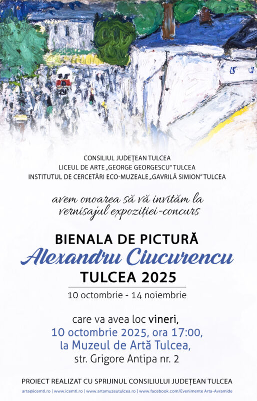 Vineri, 10 octombrie 2025, de la ora 17:00, se va deschide oficial expoziția-concurs Bienala de Pictură „Alexandru Ciucurencu” Tulcea 2025. Proiectul este realizat de Institutul de Cercetări Eco-Muzeale „Gavrilă Simion” Tulcea, în parteneriat cu Liceul de Arte „George Georgescu” Tulcea și cu sprijinul financiar al Consiliului Județean Tulcea. Pentru această ediție s-au înscris 268 de […]